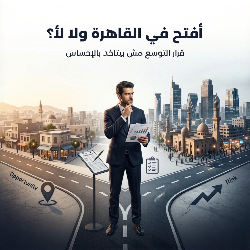 ولو عايز تبسط القرار أكثر، اعمل Score من 5 لكل اختبار: الطلب الحقيقي، العميل المناسب، الميزة التنافسية، الاقتصاديات، الجاهزية التشغيلية، والاختبار التجريبي. لو مجموعك عالي، يبقى القاهرة تستحق. لو متوسط، يبقى القرار محتاج معالجة فجوات الأول. لو ضعيف، يبقى المشكلة مش إنك لسه ما فتحتش، المشكلة إنك كنت هتدخل بدري.