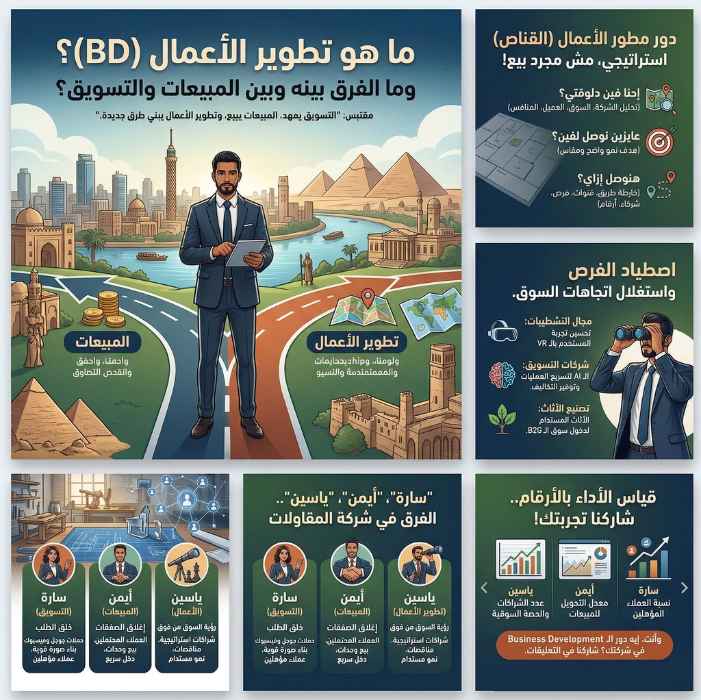 باختصار كده، مطور الأعمال مهمته يكبر البيزنس عن طريق إنه يشوف الفرص، سواء كانت شراكات أو دخول شرائح جديدة أو منتجات جديدة وهكذا.